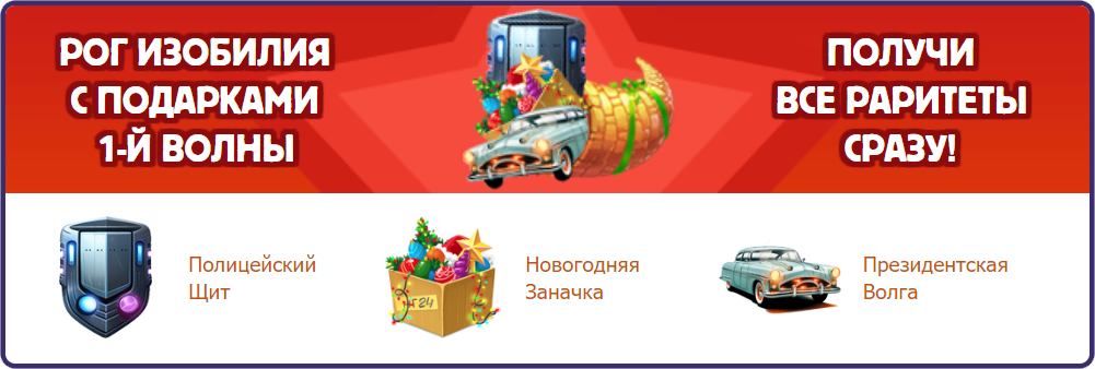 Рог изобилия — это предмет, который содержит в себе все раритеты текущей волны подарков сразу в максимальной модификации и является желанным призом для любого игрока!